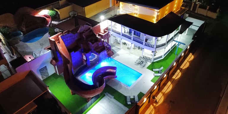 Dive into fun with your own private pool and slide, perfect for playful days under the sun.